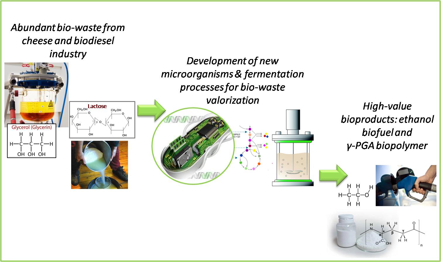 Lo scopo del progetto è la valorizzazione di scarti industriali, attraverso il loro utilizzo come materia prima per processi di fermentazione batterica, al fine di supportare lo sviluppo in Italia di una bioeconomia sostenibile.